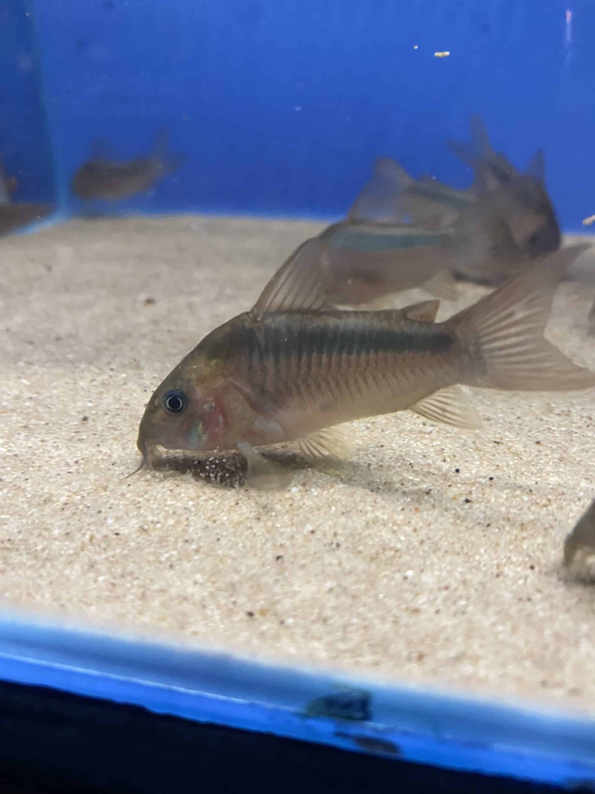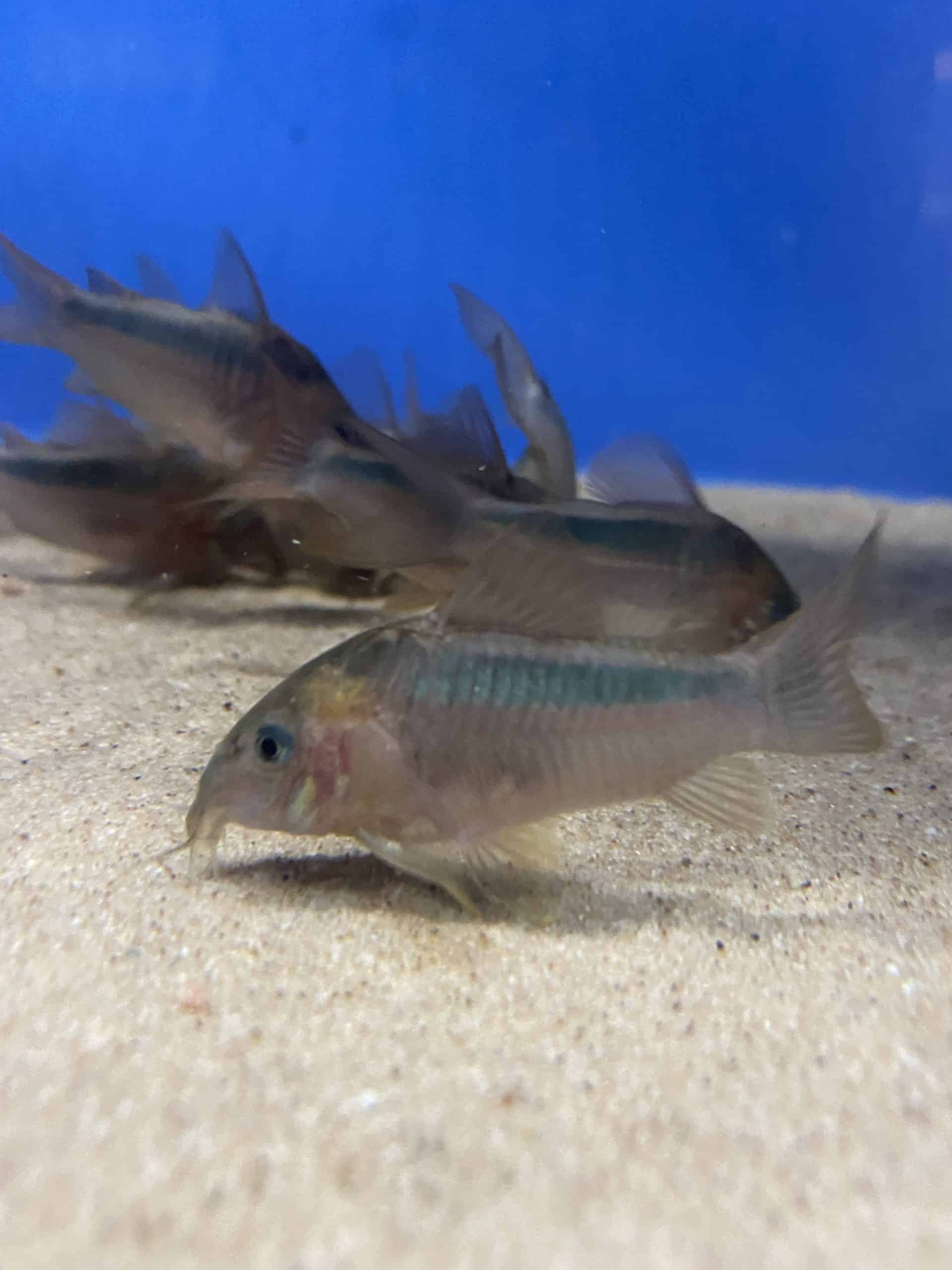 These corydoras are sold at around 2.5 to 3cm but will grow to around 5cm